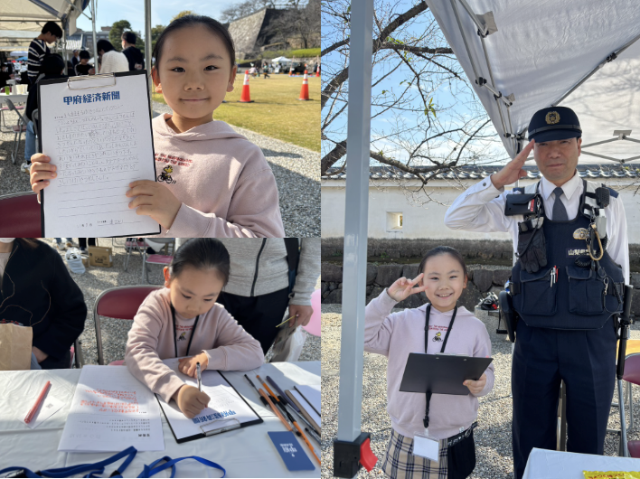 甲府経済新聞編集部が提供する「子ども記者体験」プログラムは、小学生を対象にした企画。子どもたちがイベント会場で記者としてイベント取材に挑戦し、インタビューや記事作成を体験します。