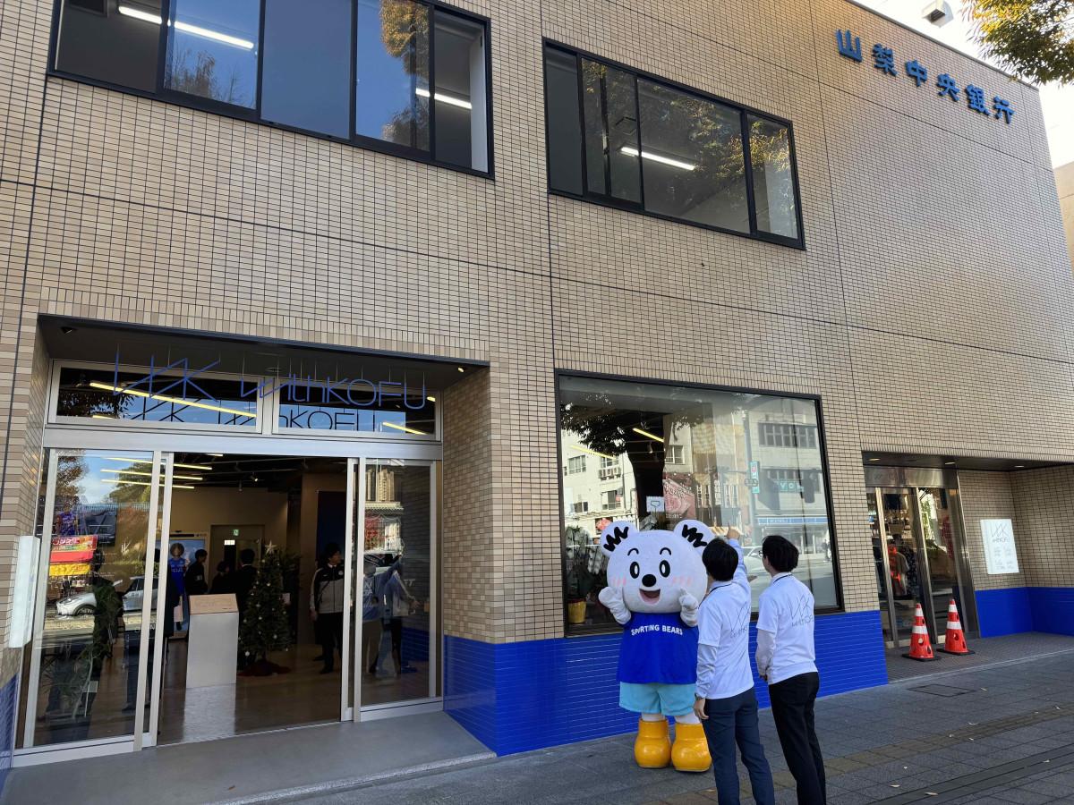 地域密着型スポーツクラブとの連携により、「金融×スポーツ×デジタル」をテーマに、「地域の新しい未来を共に育む、誰もが立ち寄れる新たなコミュニティースペース」を目指す。1階はキャッシュレス対応の銀行窓口とヴァンフォーレ甲府のショップ・カフェバー、2階は多目的スペースとなる。