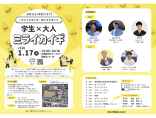 渡邉さんは「学生と大人が本音で語り合う機会、交流できる場をつくれれば。社会人になる上で聞いておきたいことや、知識を吸収したい。新しい発見が得られるようなイベントにできれば。成功させたい」と意気込む。三井さんは「学生生活を送っていく中で、大人と交流する機会が少ない。自分たちでつくることで同じ思いをしている学生にもフラットな気持ちで来てもらい、悩みや不安に思っていることを気軽に相談してもらえたら」と呼びかける。