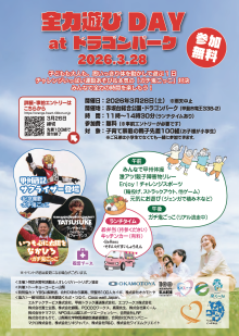 開催時間は11時~14時30分。対象は小学生の子どもがいる子育て家庭先着100組。きょうだいも参加可能。参加無料。事前エントリーは3月26日締め切り。