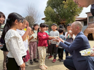 園児らは長禅寺菜の黄色い花や水やりなどの絵をパッケージに描き、「描いた絵が商品のパッケージになってうれしかった」「長禅寺菜を多くの人に知ってもらいたい」と喜んだ。榊原社長が「家族で食べてください」と商品をプレゼントすると、園児らはお返しに長禅寺菜をテーマにした歌を披露した。