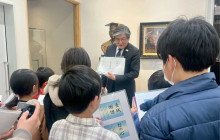 山梨大学(甲府市武田4)のゼミ生らが1月9日、小菅村の子ども8人(小4~中1)を甲府キャンパスに招き、キャンパスツアーや学食体験、観光をテーマにした模擬講義、研究室見学、弓道部の部活動体験などを行った。