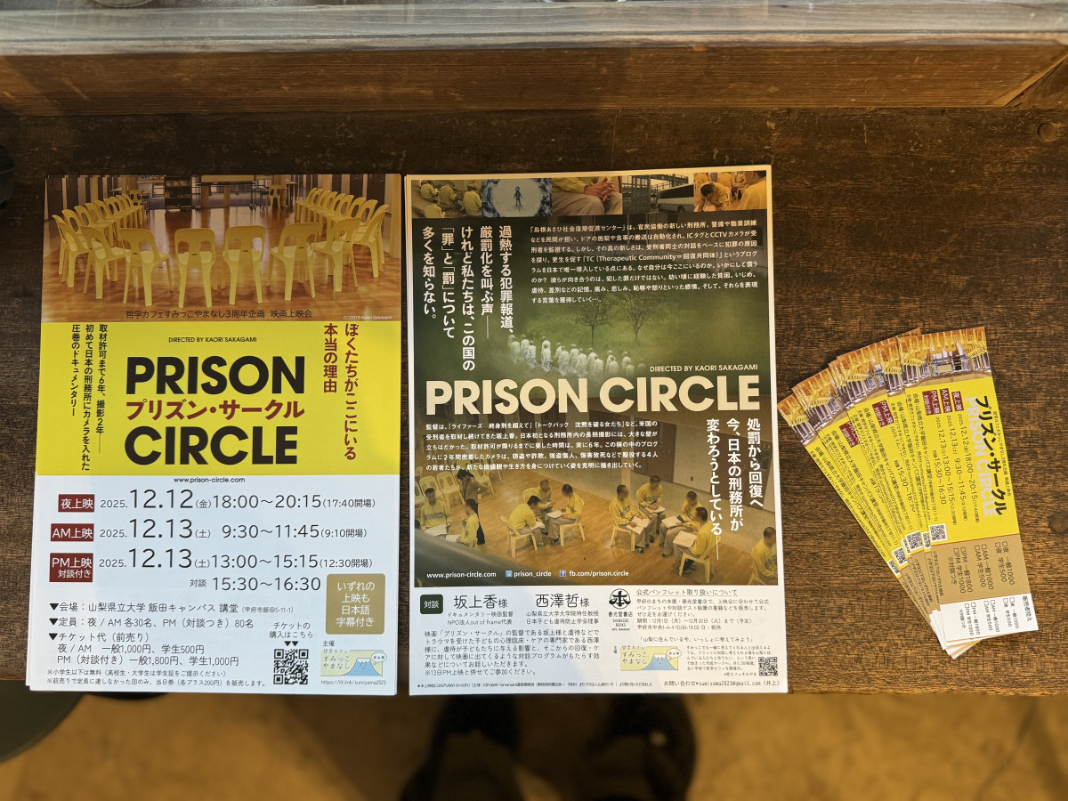 ドキュメンタリー映画「プリズン・サークル」の自主上映会が12月12日・13日、山梨県立大学飯田キャンパス(甲府市飯田)で開催される。